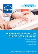 Ampack Verkaufsprogramm: Unterdeckbahnen, Fassadenbahnen, Dampfbremsen, Klebetechnik